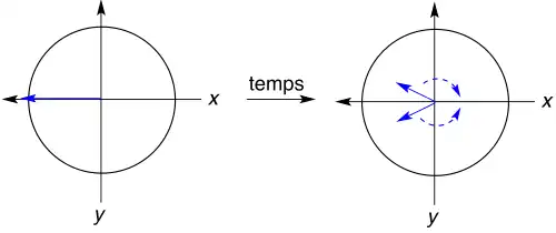Lorsque l'on excite un groupe de spins magnétiquement équivalents, il est difficile de se faire une idée de l'évolution de la magnétisation si l'on concentre sur la fréquence d'excitation réelle (le centre du spectre). Selon les règles de la spectroscopie RMN, chaque groupe de spins va observer un mouvement de précession libre pour retrouver son équilibre selon l'axe z.