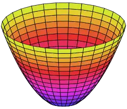 On peut comparer avec les formules des volumes d'un cylindre d'une hémisphère où et d'un cône est l'aire d'ouverture de la parabole, l'aire entourée par le bord, qui est proportionnelle à la quantité de lumière solaire que la parabole peut intercepter. L'aire de la surface concave de la parabole peut être calculée à l'aide de la formule de calcul de l'aire d'une surface de révolution, qui donne , à condition que . La fraction de lumière réfléchie par la parabole, à partir d'une source lumineuse située au foyer, est donnée par , où et sont définis comme ci-dessus.