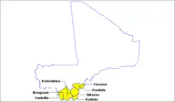| Cercles[1] | Sikasso, Kadiolo, Dandérésso, Kignan, Kléla, Lobougoula, Loulouni, Niéna |