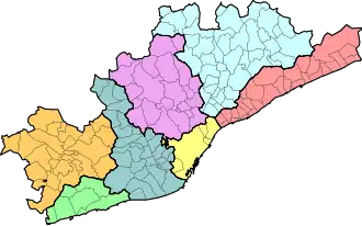 Actuellement la région est composée de 164 communes, qui ont une superficie moyenne de 19,7 km²: 27 dans l’Alt Penedès, 30 dans le Baix Llobregat, 5 dans le Barcelonès, 6 dans le Garraf, 30 dans le Maresme, 23 dans le Vallès Occidental et 43 dans le Vallès Oriental. La commune la plus peuplée est Barcelone, avec 1 595 110 habitants[7]. Il existe un nombre relativement élevé de communes, malgré les nombreux changements survenus au fil du temps. Cette caractéristique oblige la planification territoriale au niveau régional et non au niveau communal, et donc la préparation de plans d’organisation municipale de planification (POUM).
