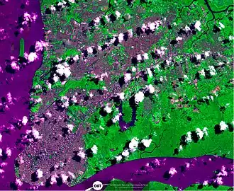 - Sur la carte satellite, le vert et le violet représentent la région métropolitaine de Belém