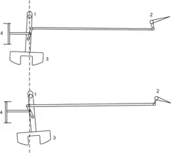 1. Pivot du pendule, 2. Gouvernail, 3. Masse, 4. Capteur de pression (valve hydrostatique)