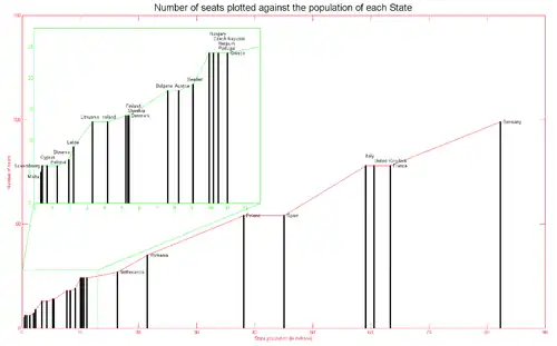 - la limite maximale de sièges : aucun État ne peut obtenir plus de 96 députés (selon le traité de Lisbonne)