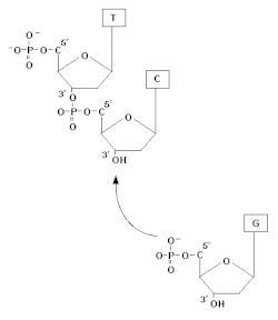 Chez les procaryotes, les fragments d' Okazaki ont une longueur de 1.000 à 2.000 paires de bases ; chez les eucaryotes, ils ne font qu'environ 200 paires de bases de long.