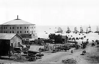 La situation n’était guère différente dans le sud, où de la même manière, les propriétaires d’estancias (domaines agricoles) monopolisaient le commerce et la production lainières[74]. La seule exception était la colonie galloise du Chubut, qui s’était constituée et organisée socialement et culturellement en marge de la société argentine, quand même elle était méticuleusement contrôlée par les autorités[75]. À partir de 1884, les Gallois eurent même leur propre chemin de fer[76].