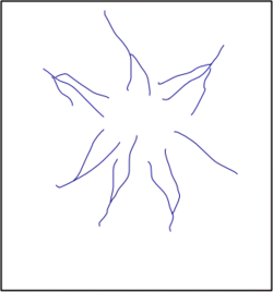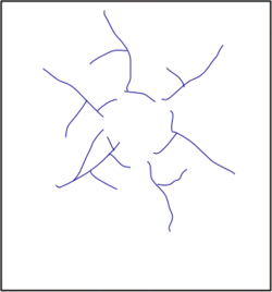 Le système de drainage centripète (centripetal drainage pattern) est similaire au système de drainage radial, à la seule exception que le drainage radial s'écoule au-dehors par rapport au drainage centripète qui s'écoule au-dedans[4]