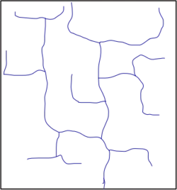 Des schémas de drainage angulaires (angular drainage pattern) se forment là où les joints du socle rocheux et les failles se croisent selon des angles plus aigus que les schémas de drainage rectangulaires. Les angles sont plus et moins de 90 degrés[5].