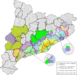 L'ATM du Camp de Tarragone est constituée de deux zones, trois comarques dans la première zone et trois autres comarques supplémentaires dans la deuxième.