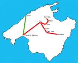 | Réseau ferroviaire de Majorque | |||||||||||||||||||||||||||||||||||||||||||||||||||||||||||||||||||||||||||||||||||||||||||||||||||||||||||||||||||||||||||||||||||||||||||||||||||||||||||||||||||||||||||||||||||||||||||||||||||||||||||||||||||||||||||||||||||||||||||||||||||||||||||||||||||||||||||||||||||||||||||||||||||||||||||||||||||||||||||||||||||||||||||||||||||||||||||||||||||||||||||||||||||||||||||||||||||||||||||||||||||||||||||||||||||||||||||||||||||||||||