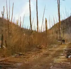 Alors que la majeure partie des terres bordant le Lac Ontario se remplissent, le gouvernement n'a d'autre choix que de céder à la pression populaire demandant l'ouverture de l'impitoyable terrain du Bouclier canadien à la colonisation et doit construire d'autres voies est–ouest et nord–sud entre la Vallée de l'Outaouais et la Baie Géorgienne[49],[50]. Dans les années qui suivirent, le gouvernement a construit au-dessus de 1 600 km (1 000 mi) de routes dans les nouveaux territoires développés. Ces routes étaient plus souvent qu'autrement un sentier tracé dans la forêt à peine assez large pour laisser passer un charriot wagon[51].