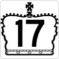 Lorsque l'Ontario signe l'accord sur l'autoroute transcanadienne le 25 avril 1950, la province a déjà choisi un tracé dans le centre de l'Ontario via les routes 7, 12, 103 et 69[73]. La Route 17 dans la Vallée de l'Outaouais est annoncée comme une route provinciale secondaire à la Route transcanadienne[74]. Parmi les segments les plus difficiles à construire au Canada, celui de 165 mi (266 km) connu comme the Gap est le lien manquant de la Route transcanadienne entre Nipigon et Sault-Sainte-Marie[75] La construction a commencé en 1956[76]. et se termine en 1960, réunissant les deux segments et complétant le lien de la Route 17 entre les frontières du Manitoba et du Québec.