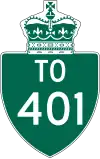 Le boom de construction suivant la guerre mène à la création de plusieurs nouvelles autoroutes dans la province. La route entre Toronto et Barrie (Autoroute 400), la route Trans-Provinciale (Autoroute 401)[21], un court prolongement de la Route 7 approchant le Blue Water Bridge à Sarnia (Autoroute 402)[77] et le prolongement de la Route 27 (éventuellement désignée comme Autoroute 427 au milieu des années 1970) sont tous des projets en cours ou complétés au début des années 1950[21]. Cherchant une manière de distinguer les routes à accès contrôlé des autres routes régulières (les King's Highway), le gouvernement créé la désignation Série-400 en 1952. À la fin de l'année, les autoroutes 400, 401 et 402 sont numérotées, bien qu'elles ne sont qu'une fraction de ce qu'elles sont aujourd'hui[78]. L'Autoroute 401 est créée par segments, devenant complète entre Windsor et la frontière du Québec le 10 novembre 1964[79]. L'Autoroute 400 est prolongée vers le nord jusqu'à Coldwater en 1959[80]. L'Autoroute 402 a été prolongée jusqu'à London entre 1972 et 1982[81],[82].