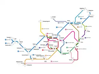 A noter que sur cette carte, certaines lignes ne sont dans le réseau que dans certaines gares, généralement les plus proches d'Osaka. [7]