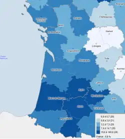 | Deux-Sèvres | SCAGE 79 (Coop'79) (bassin Sèvre niortaise-Mignon) | 13[Note 3] | 23 octobre 2017 | sursis à statuer le 27 mai 2021 [26] Rejet le 11 avril 2023[26] | 4[Note 4] | ||||||