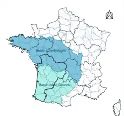 La Nouvelle-Aquitaine se répartit en deux bassins hydrographiques (Loire-Bretagne et Adour-Garonne)