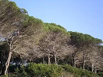 Dans les zones moins visitées le sous-bois est encore bien développé avec une bonne quantité de chêne vert et de chêne-liège. Dans les sections de la réserve où la dune mobile apparaît encore, poussent des formations de pâquerettes, de nénuphars et de spartinas. Dans les zones humides, situées à l'intérieur de la forêt de pins, il y a des surfaces de Arundo donax et de joncs des marais.