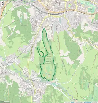 Le territoire de la réserve naturelle est dans le département du Jura, sur les communes de Lons-le-Saunier et Macornay. Entre 278 m et 415 m, il occupe une surface de 49,21 ha et se présente sous la forme d'un coteau d'environ 1,5 km du nord au sud faisant partie du Revermont (faisceau lédonien) et dominant Lons-le-Saunier et l'entrée de la reculée de Vernantois. Le site se trouve à 2 km au nord de la réserve naturelle nationale de la grotte de Gravelle sur la même commune de Macornay.