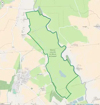 Le territoire de la réserve naturelle est dans le département d'Ille-et-Vilaine, sur la commune de Sougeal. Il forme une bande d'environ km de long sur 500 m de large orientée nord-sud.