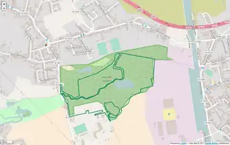 Le site est bordé à l'est par un terrain militaire, à l'ouest par la rue de la Motte-Julien et le parc Charles-Fenain, au nord par des champs captants appartenant à la société Eaux du Nord et à la Région.