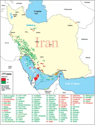 Liste des champs pétroliers en Iran