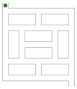 - Si vous arrivez à une jonction qui n'a pas de marque (à part celle du chemin par lequel vous êtes arrivé), choisissez un chemin non marqué au hasard, marquez-le et suivez-le.