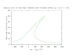 Ensuite, la forme de la courbe de résonance est modifiée (effet de repliement). Lorsque l'amplitude de la force externe (sinusoïdale) atteint une valeur critique , des instabilités apparaissent. La valeur critique est donnée par la formule :