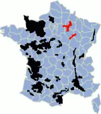 En 1927, après sept années de batailles judiciaires, la majorité du vignoble aubois, dont la côte des Bar, revient dans la délimitation de la Champagne viticole[3]. En 2013, l'appellation en production s'étale sur cinq départements : la Marne (66,38 %)[5], le tiers restant réparti sur l'Aube, l'Aisne, la Haute-Marne et la Seine-et-Marne.