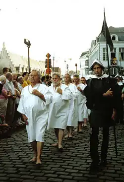 L'attitude de Charles Quint, qui entre dans la ville le , a été l'objet de vifs débats entre historiens. Certains y voient une répression rapide, vengeresse et impitoyable. Il est vrai que la ville fut symboliquement châtiée pour avoir lésé la majesté de l'empereur : une dizaine de meneurs (entre neuf et dix-sept hommes) furent décapités et cinq cents bourgeois durent défiler en habit de pénitents, pieds nus avec une corde au cou, devant l'empereur pour requérir sa grâce. Depuis cette époque, les Gantois sont surnommés «Stroppendragers» (les «garrottés»). La prestigieuse abbaye de Saint Bavon fut nettement affaiblie, son monastère rasé et transféré dans la modeste collégiale Saint-Jean (actuelle cathédrale). Seuls quelques édifices en furent préservés pour être intégrés à la nouvelle citadelle, dont les canons visaient aussi bien l'extérieur que la ville. Les fossés de la ville furent également comblés, tandis que la cloche du beffroi, la "Klokke Roeland", symbole des libertés communales, est descendue.