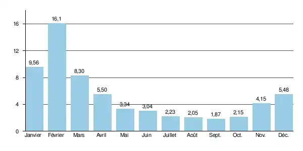 La lame d'eau écoulée dans le bassin versant de la rivière atteint ainsi le chiffre assez élevé de 239 millimètres par an.