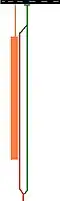 Sur le plan schématique des voies (voir à droite), la voie principale est représentée en rouge. Les voies de manœuvres sont représentées en vert et le quai en rose.
