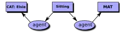 Le diagramme de droite est un exemple de la forme d'affichage d'un graphe conceptuel. Chaque boîte est appelé un nœud de concept, et chaque ovale est appelé un nœud de relation. En CGIF, ce graphe conceptuel serait représenté par la déclaration suivante: