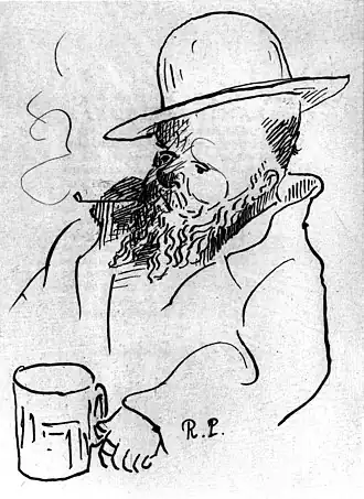 À ce titre, le premier texte qu’on connaisse de lui est la préface du catalogue du salon de peintures « Poil et Plume », où il exposait. C’était une bohème organisée et régulière : il allait tous les jours de la semaine prendre son petit déjeuner au café de Cluny, où il retournait l’après-midi s’attabler devant un verre d’absinthe, après avoir pris son seul repas quotidien dans un bouillon bon marché de la rue Racine.