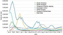 En , beaucoup de pays de l'UE et de l'EEE ont observé une augmentation du nombre de cas mais tous ces pays n'ont pas observé une augmentation du taux d'hospitalisation et de mortalité[31]. Au , en France, la directrice stratégique du ministère de Santé, Lisa-Maria Voipio-Pulkki estime qu’une « forme de seconde phase avait commencé », mais qu'il est prématuré de parler de « seconde vague »[32].
