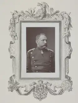 Leopold August Eduard von Reckow - Heinrich von Reckow (de)(1815-1895), général de division prussien et Colonel de la 29e brigade de cavalerie de l'empire Allemand[10].