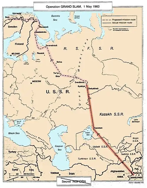 - (en) Cet article est partiellement ou en totalité issu de l’article de Wikipédia en anglais intitulé « United States aerial reconnaissance of the Soviet Union » (voir la liste des auteurs).