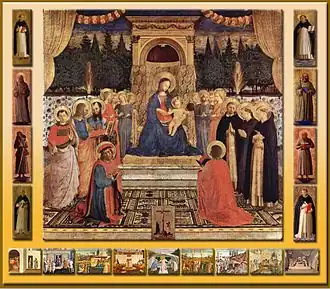 Dans le cas de la Pala di San Marco de Fra Angelico, ce sont les inclinaisons des bas de robes de bure qui permettent de disposer les panneaux latéraux des saints.