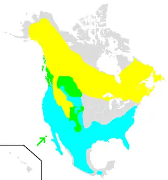 Ces oiseaux migrent vers le sud des États-Unis et le Mexique. Certains oiseaux sont résidents permanents dans l'ouest.