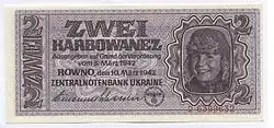 Ainsi, le Commissariat était doté d'une banque centrale, la Banque centrale monétaire d'Ukraine (ZNU)[29], créée par décret le ; cet institut d'émission de monnaie est placé sous le contrôle de fonctionnaires de la Reichsbank. Ainsi, cette nouvelle banque centrale émet une monnaie nationale, le karbowanez, qui remplace le rouble[30].