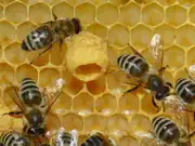 - Cellules d'essaimage : les cellules royales créées avant un essaimage sont généralement nombreuses (une dizaine) et toutes suspendues au bas ou sur les côtés d'un cadre. Lorsqu'on voit des cellules royales pondues et operculées, c'est le signe que l'essaimage est proche (si la météo le permet). Si on souhaite diviser sa colonie, l'utilisation d'un cadre porteur d'une cellule d'essaimage est une très bonne solution car les reines créées lors d'essaimage sont de bonne qualité.