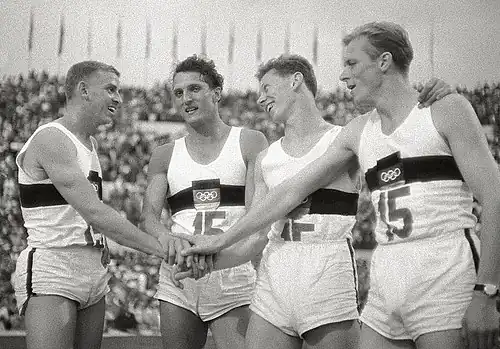 - ↑ (en) « 1936 Summer olympics - 4 × 100 metres Relay, Men », sur olympedia.org (consulté le )