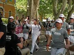 - Basile Boli, Tony Parker, Gaëtan Müller, Nando de Colo, Denis Gargaud Chanut, Frédérick Bousquet, Fabien Gilot, Cyprien Sarrazin, Vincent Matheron, Jean-Baptiste Bernaz, Lauriane Nolot, Redouane Bougheraba, Camille Combal, Nicole Ferroni, Alexandre Mazzia, Alonzo, Éric Di Meco, Valentin Rongier, Louisa Necib, Jean-Pierre Papin, Soprano et Didier Drogba pour le relais à Marseille le [44] ;