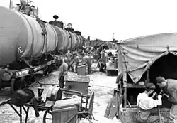 - ↑ Roberts, Geoffrey, Stalin's Wars: From World War to Cold War, 1939–1953, Yale University Press, (ISBN 0300112041), p. 42, fait état de chiffres légèrement différents dont 2 millions de tonnes de produits pétroliers, 140 000 tonnes de manganèse, 1,5 million de tonnes de bois et 100 000 tonnes de coton.
