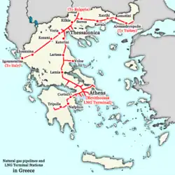 - ↑ « Algeria: Algerian Gas Exports To Greece., IPR Strategic Business Information Database » [archive du ], Highbeam.com, (consulté le ).