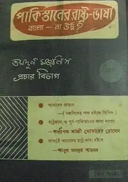 C'est alors que le Pakistan devient la première République Islamique. Cependant, l'unification passe aussi par la culture pour un pays détaché de plus de 2 000 km avec entre autres une langue officielle commune. C'est ce facteur qui enclencha les mésententes entre les deux parties. Après un mois d'indépendance, des protestations commencèrent à s'organiser dans la partie orientale du pays en réponse à l'utilisation de l'ourdou et de l'anglais sur les documents administratifs comme les timbres ou encore les billets de banque[14]. Le , le pamphlet « Pakistaner Rashtra Bhasha: Bangla Na Urdu? » (« পাকিস্তানের রাষ্ট্রভাষা: বাংলা না উর্দু? » en bengali soit « La langue nationale du Pakistan : le bengali ou l'ourdou »)[15]. C'est alors qu'est né le mouvement pour la langue et le Taddadum Majlis (Association culturelle) à Dacca pour instituer le bengali comme langue officielle au Bengale tandis que le Pakistan occidental garderait l'ourdou. En effet, l'imposition de l'ourdou, alors parlé par moins de 5 % de la population[16] est en net contraste avec la présence écrasante des 64 % de locuteurs bengalis[14],[17]. En novembre 1947, le ministre de l'éducation bengali affirme que seuls l'ourdou et l'anglais seront gardés et que le bengali ne sera plus utilisé[15]. Le , la première assemblée constituante du Pakistan est marquée par l'intervention de Direndra Nath Dutta, membre du parti Pakistan National Congress et déposant une résolution pour placer le bengali au statut de langue nationale au côté de l'ourdou et de l'anglais, elle est rejetée tant par des membres non bengalis que bengalis. Des grèves sont enclenchées dans la région orientale en février et mars 1948 mais ces revendications sont mal vues par le pouvoir en place et des centaines d'activistes sont arrêtés[18]. Avant l'arrivée de Muhammed Ali Jinnah, le ministre du Bengale Khawajw Nazimuddin assura la libération des manifestants prisonniers ainsi que la mise en place du bengali comme langue officielle avec l'abandon de l'anglais. Cette signature n'ayant que pour but que de calmer les tensions, le Qaid i Azam Jinnah, le , confirma en effet la place de l'ourdou comme langue nationale dans tout le pays[14].