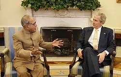 Depuis 2004, Washington et New Delhi poursuivent un partenariat stratégique qui repose sur des valeurs communes et des intérêts géopolitiques généralement convergents. De nombreuses initiatives économiques, sécuritaires et mondiales — y compris des plans de coopération nucléaire civile — sont en cours. Cette dernière initiative, lancée pour la première fois en 2005, a permis d'inverser trois décennies de politique américaine de non-prolifération[53],[54]. Toujours en 2005, les États-Unis et l'Inde ont signé un accord-cadre de défense de dix ans, dans le but d'étendre la coopération bilatérale en matière de sécurité. Les deux pays se sont engagés dans de nombreux exercices militaires combinés sans précédent, et d'importantes ventes d'armes américaines à l'Inde ont été conclues[55]. Un accord sur les libertés aériennes a été signé en , renforçant le commerce, le tourisme et les affaires grâce à l'augmentation du nombre de vols[56], et Air India a acheté 68 avions Boeing américains pour un montant de huit milliards de dollars[57]. Les États-Unis et l'Inde ont également signé un accord bilatéral de coopération scientifique et technologique en 2005[58]. Après l'ouragan Katrina, l'Inde a fait un don de cinq millions de dollars à la Croix-Rouge américaine et a envoyé deux avions chargés de fournitures et de matériel de secours pour aider[59]. Puis, le , le président Bush a effectué une nouvelle visite diplomatique pour développer davantage les relations entre l'Inde et les États-Unis[60].