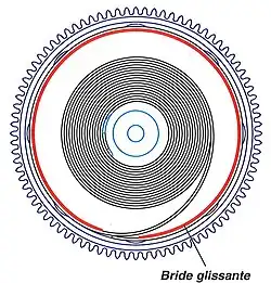 On ajoute tout de même une bride glissante dont le but est d'appuyer plus fortement la dernière spire du ressort contre le tambour de barillet.