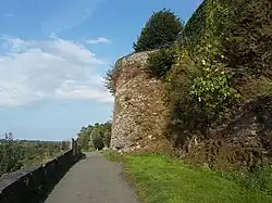 | 17 | Contrescarpe | Rue Rallon | XIIIe siècle | Subsiste une contrescarpe le long des remparts Est sur la promenade du Val. Celle de la rue de la Borderie est de la roche lors du creusement des fossés. | ![]() | |