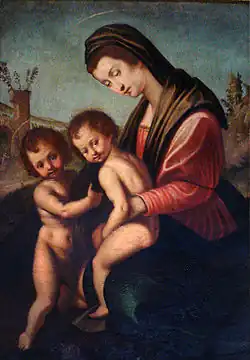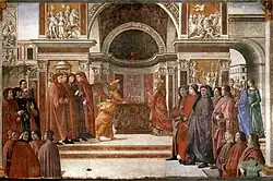 Cycle de la vie de saint Jean-Baptiste au Duomo de Sienne par le Pinturicchio: (La Visitazione, le Battesimo di Cristo et la Decollazione repeints se sont plus considérés comme de la main du maître, a contrario des cinq scènes suivantes):