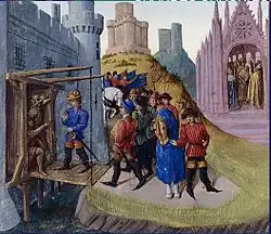L'art de l'enluminure connaît au XVe siècle un grand bouleversement : Le paysage se fait plus nettement naturaliste, les arbres stylisés et décoratifs du gothique international cèdent la place à de "vrais" arbres ; les cathédrales qui se découpent en arrière-fond des miniatures sont parfois clairement identifiables, et les ponts apparaissent normalement représentés[2]. Jean Fouquet est le principal représentant de cette évolution. En 1458, il est chargé - peut-être par le roi Charles VII de France lui-même - d'illustrer les Grandes Chroniques de France[3] ou, des ponts-levis peuvent être vus sur plusieurs de ses œuvres.