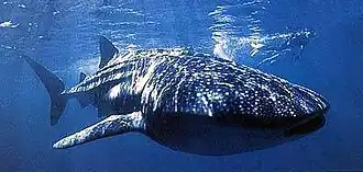 Le requin-baleine (Rhincodon typus) est une espèce de poissons cartilagineux, seul membre du genreRhincodon et seule espèce actuelle de la famille des Rhincodontidae. Pouvant exceptionnellement atteindre 20 mètres de long, pour une masse de 34 tonnes, ce requin est considéré comme le plus grand poisson vivant actuellement sur Terre. Cependant, sa taille observable est en pratique généralement comprise entre 4 et 14 mètres.